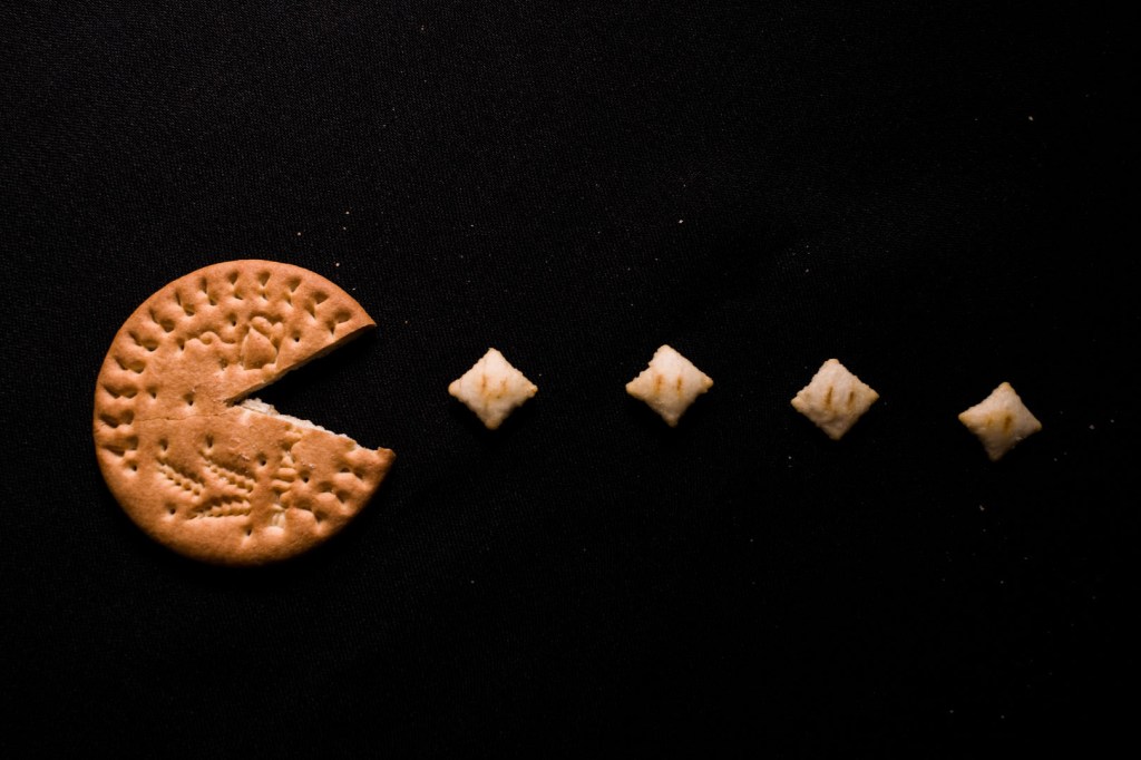 Next I’m gonna play with some biscuits. Pacman biscuit!