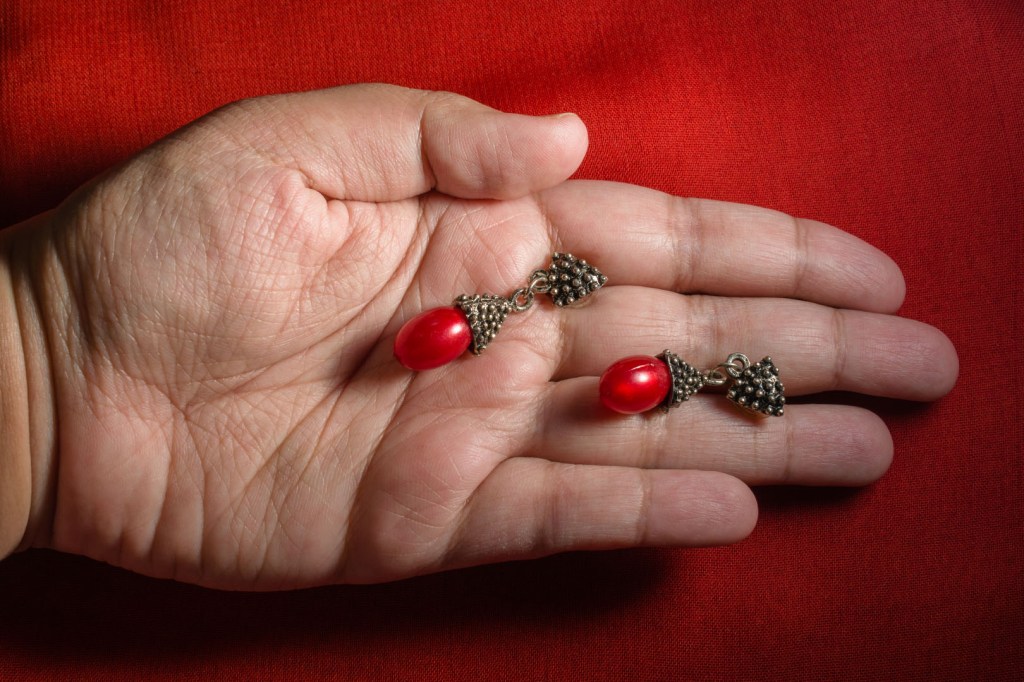 Using natural window light, I will click some jewellery placed on a red dupatta.